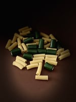 Collar corto realizado a mano con piezas cerámicas esmaltadas en verde musgo brillante. Lleva un cordón encerado.